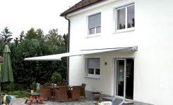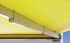 - schlanke Cassettenmarkise mit patentierten Teleskoparmen